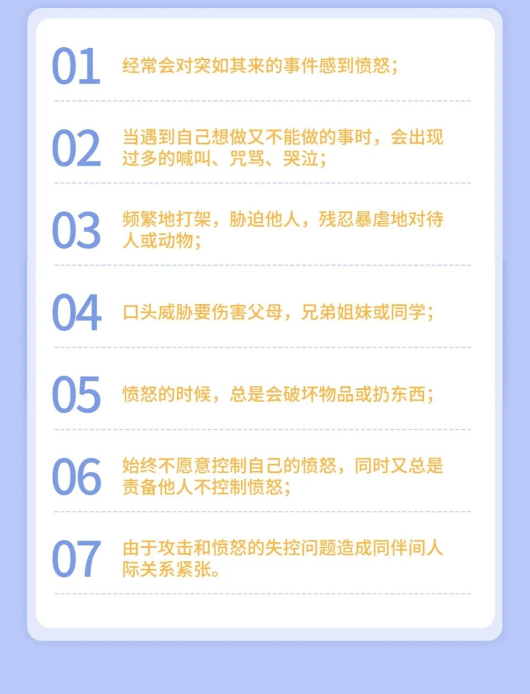 為孩子在家或在學校的行為建立明確的規(guī)則,并讓孩子復述這些規(guī)則以確認他理解了這些規(guī)則,以防當他有違規(guī)行為而受到懲罰時更加憤怒。